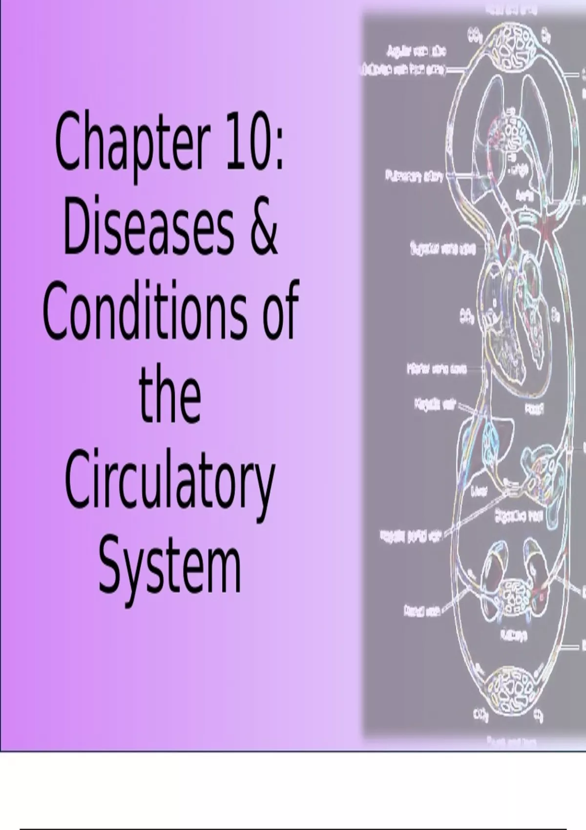 Diseases & Conditions of the Circulatory System Includes overview of circulatory system, some heart and circulatory diseases. Based on Essentials of Human Diseases & Conditions 7th edition BY Margaret Schell Frazier & Tracie Fuqua