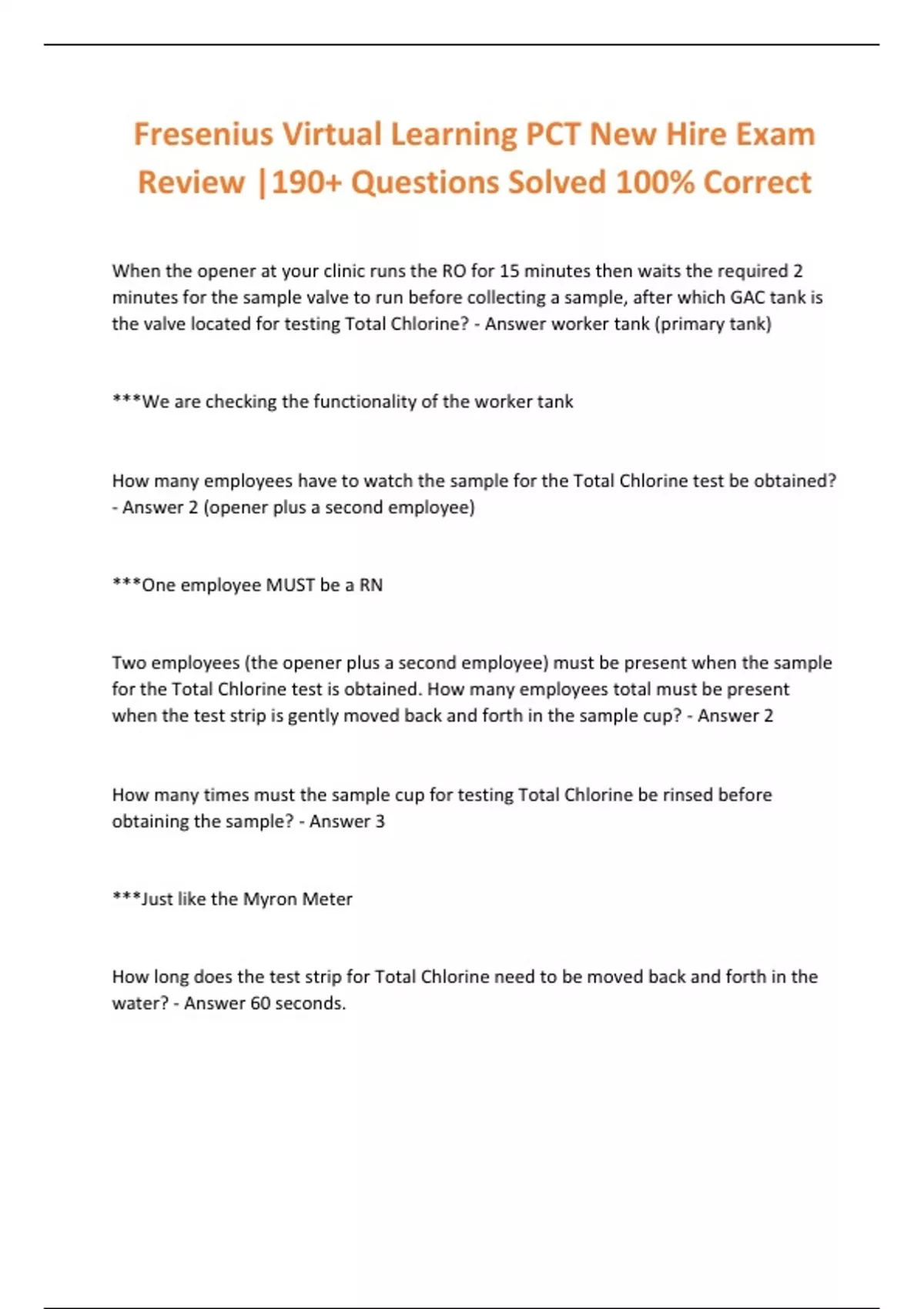 Fresenius Virtual Learning PCT New Hire Exam Review |190+ Questions Solved 100% Correct