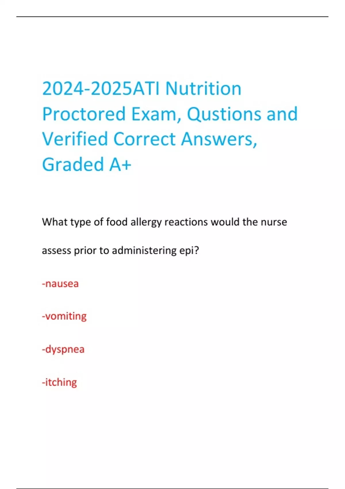 ATI Nutrition Proctored Exam, Qustions and Verified Correct Answers, Graded A+