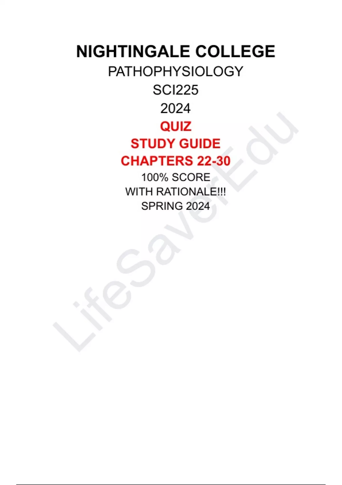 SCI 225 Pathophysiology Exam Quiz Chapter 22 - 30 Nightingale College Year: 2024 Answers and Rationale 100% correct