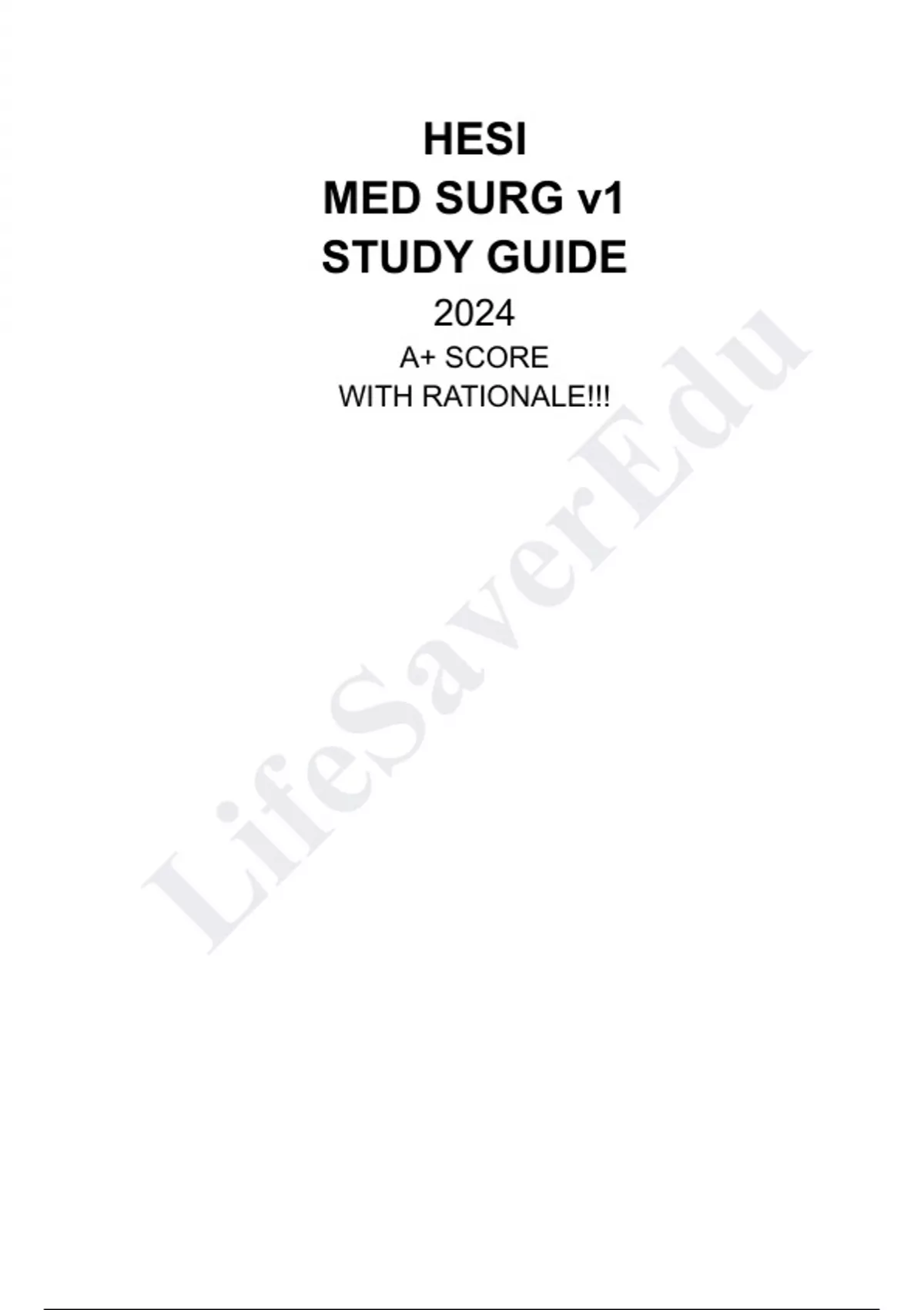 HESI MED SURG V1 2024 Questions,Answers, & Rationales STUDY GUIDE