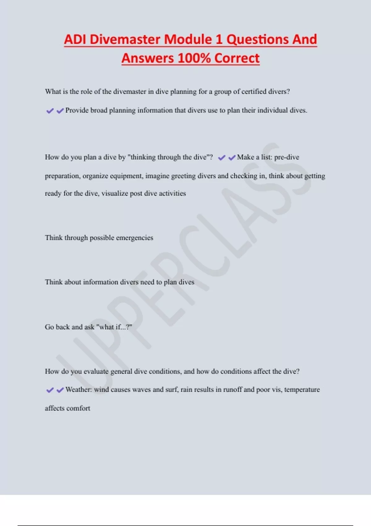 ADI Divemaster Module 1 Questions And Answers 100% Correct