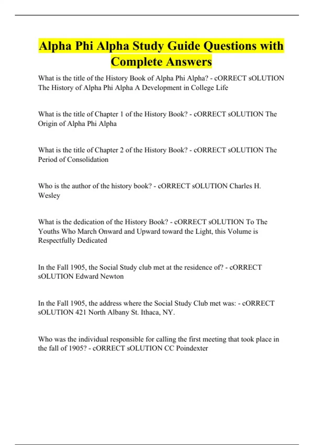 Alpha Phi Alpha Study Guide Questions with Complete Answers