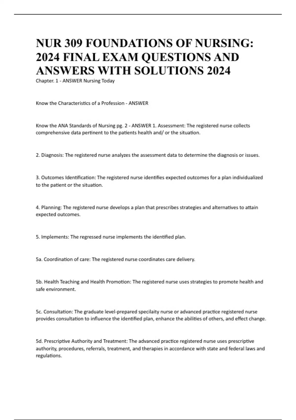 NUR 309 FOUNDATIONS OF NURSING: 2024 FINAL EXAM QUESTIONS AND ANSWERS WITH SOLUTIONS 2024