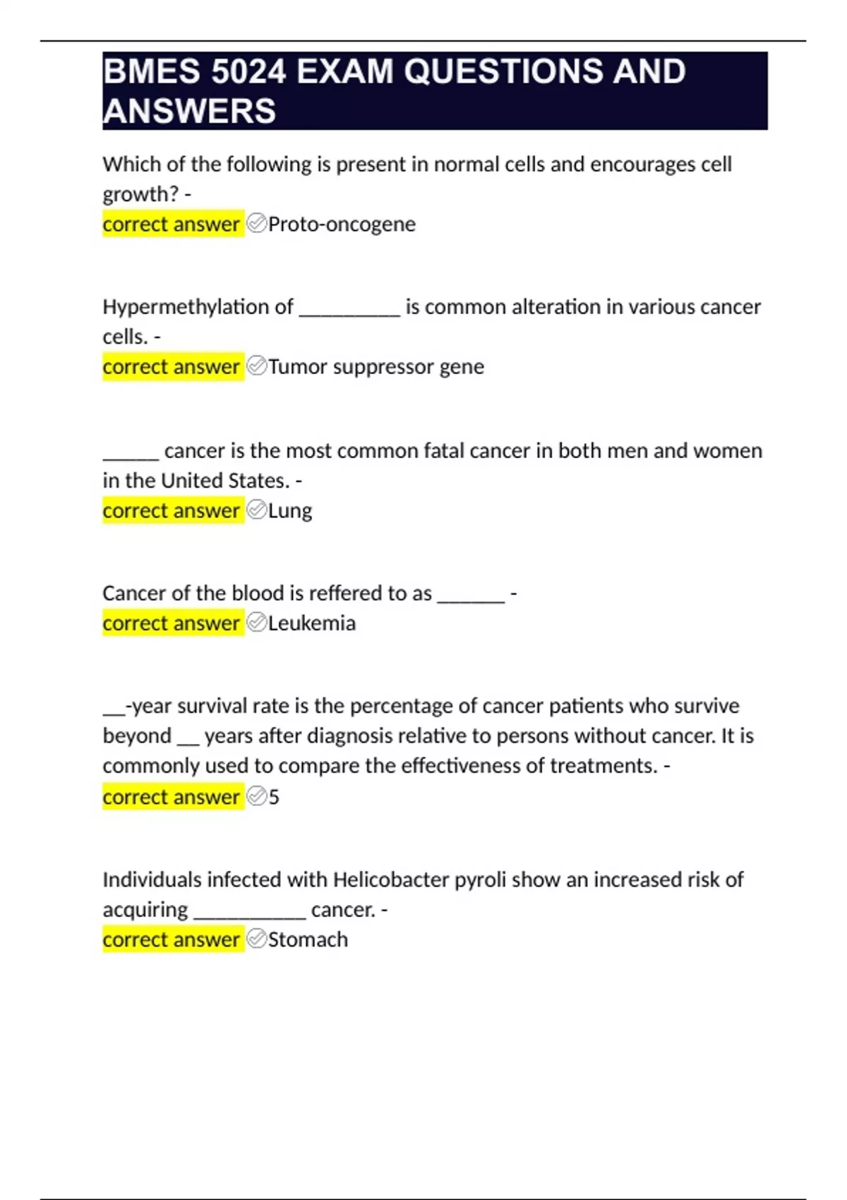 bmes 5024 exam questions and answers