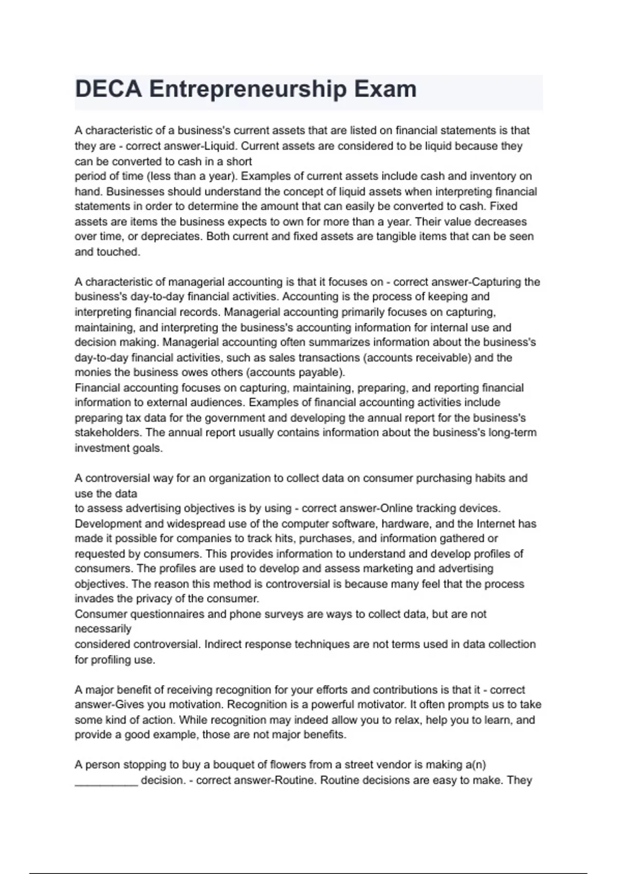 DECA Entrepreneurship Exam Questions and answers (1)