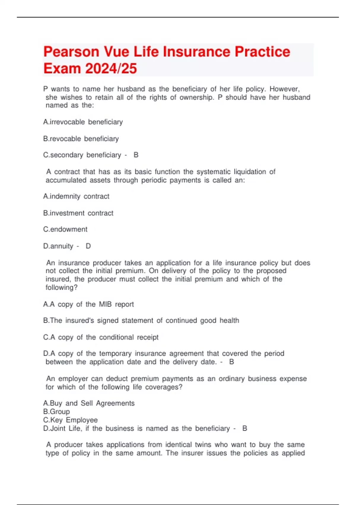 Pearson Vue Life Insurance Practice Exam 2024/25