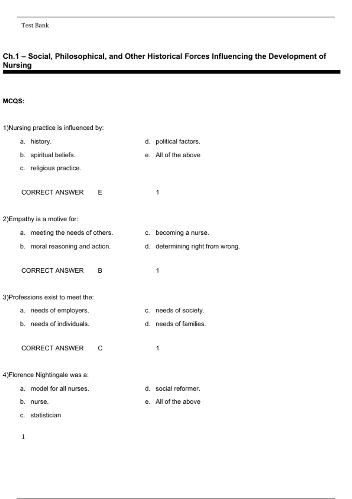 The test bank accompanying Ethics and Issues in Contemporary Nursing,Burkhardt,3e is your short-cut for exam success. It includes large pool of practice questions created specifically for the textbook used in your class. All answers included. 100% Authentic. Mastering those questions is a sure way to excel and pass the class.