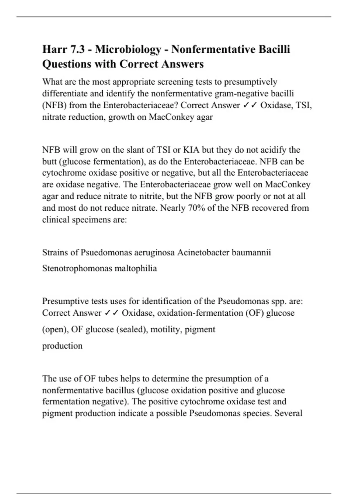 Harr 7.3 - Microbiology - Nonfermentative Bacilli Questions with Correct Answers