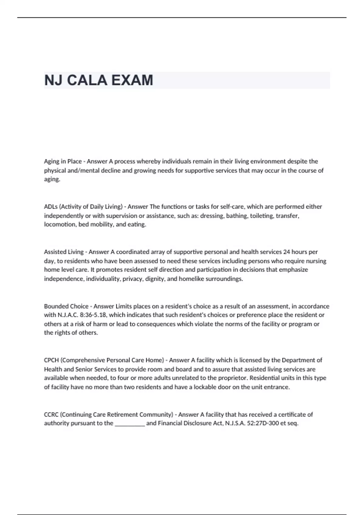 NJ CALA EXAM QUESTIONS AND CORRECT ANSWERS