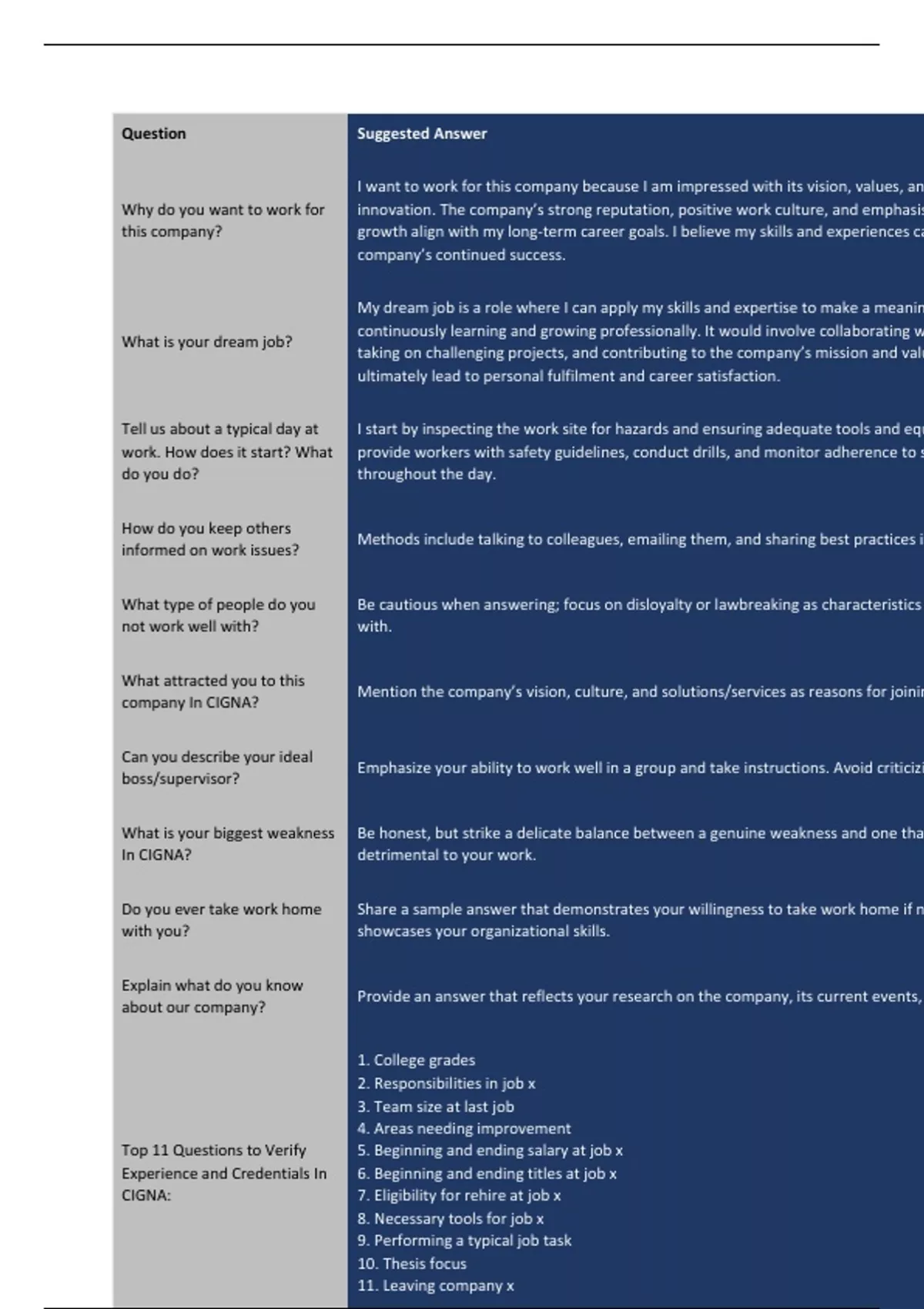 In CIGNA? detrimental to your work.