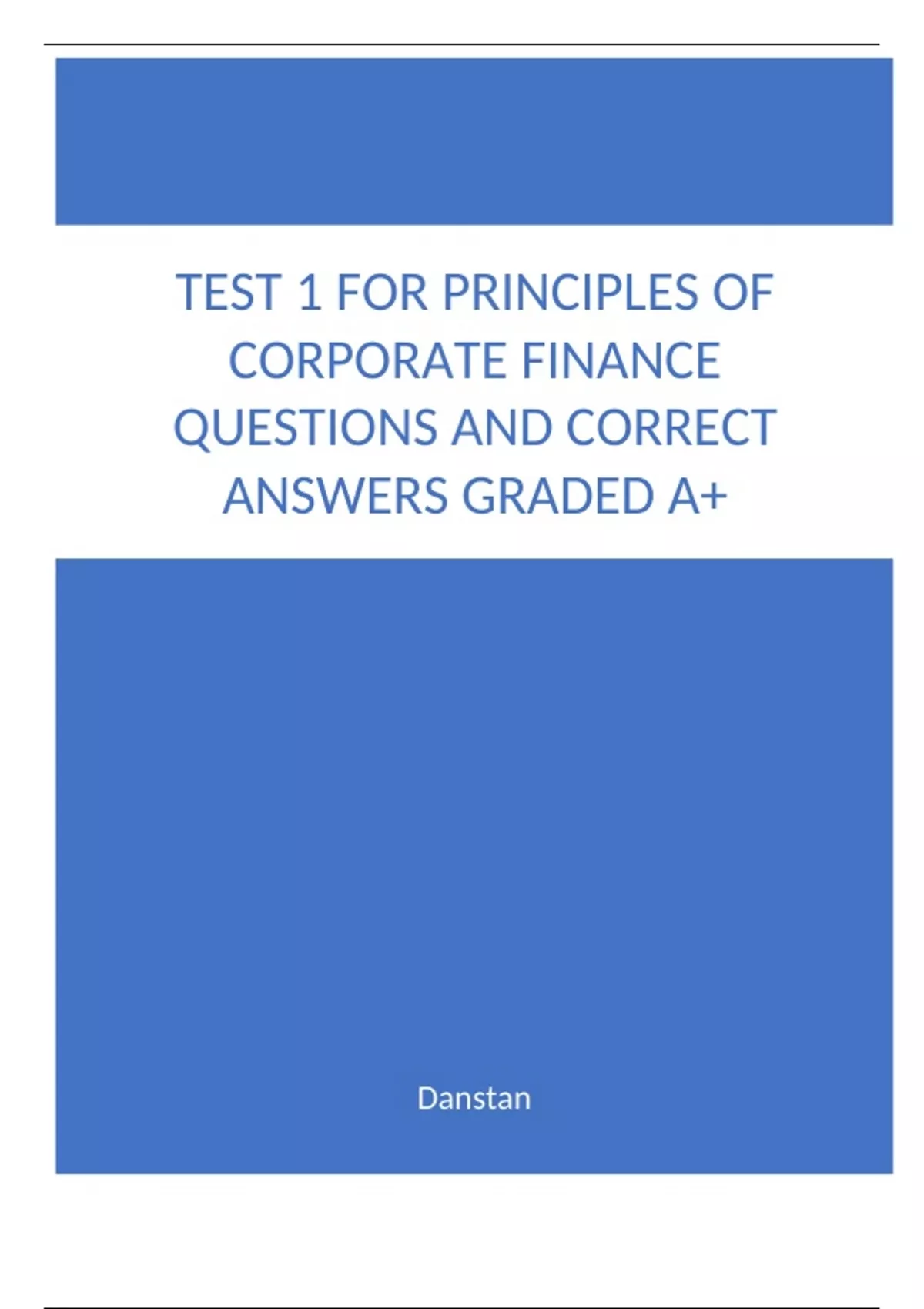 Test 1 For Principles of Corporate Finance Questions and Correct Answers Graded A+