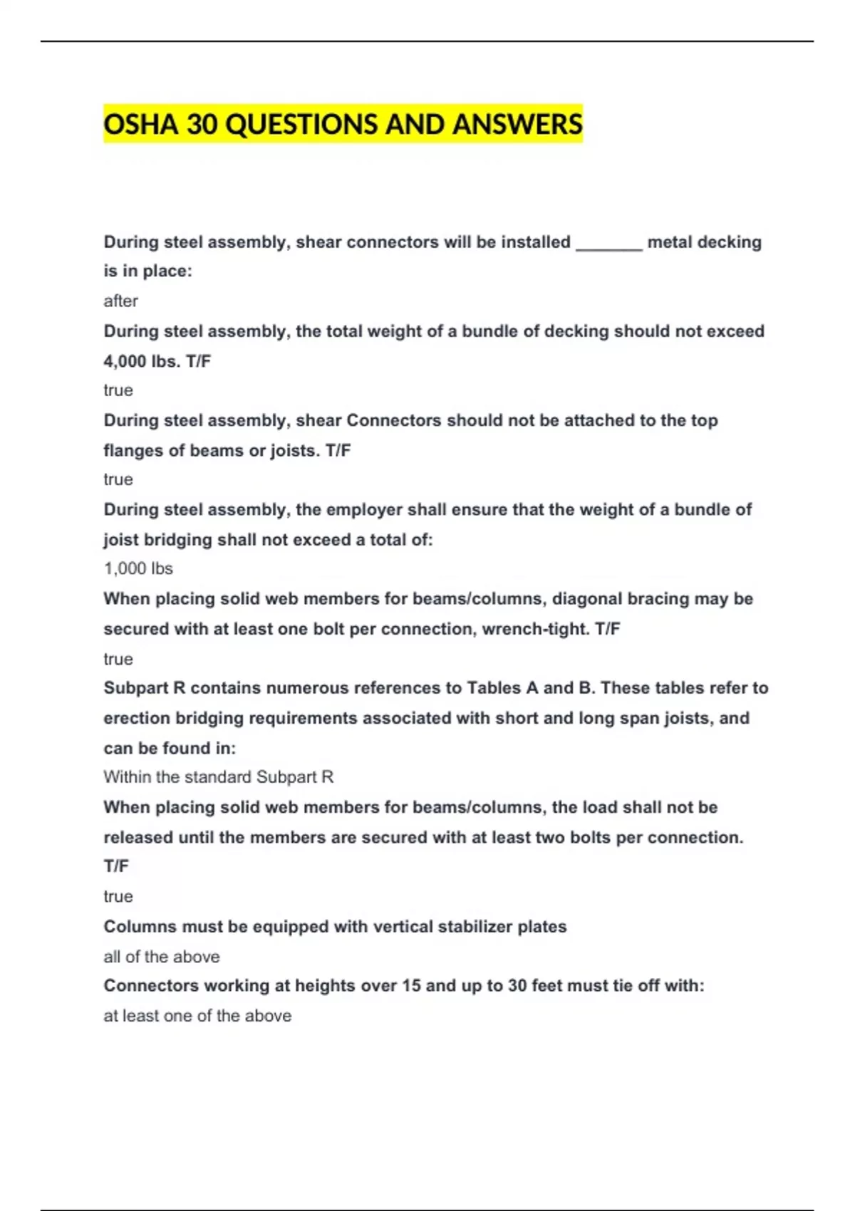 During steel assembly, the employer shall ensure that the weight of a bundle of