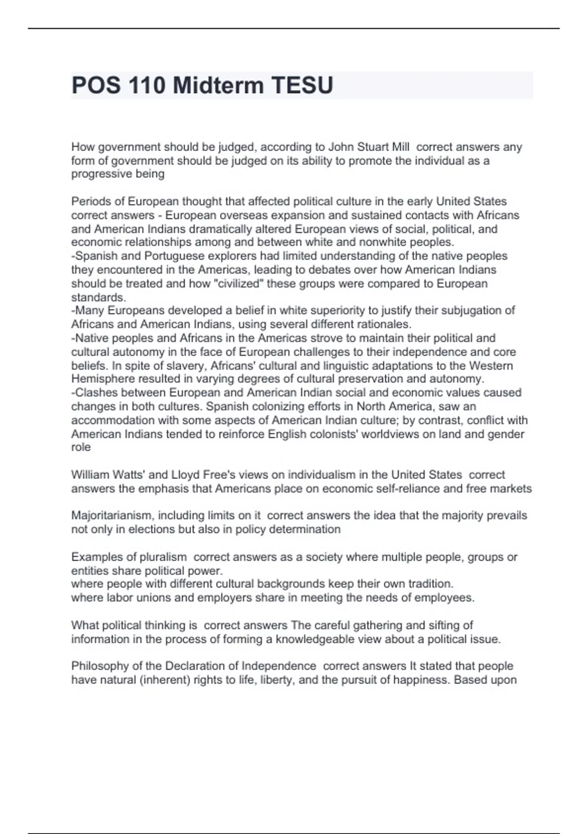 POS 110 Midterm TESU exam with 100% correct solutions 2024