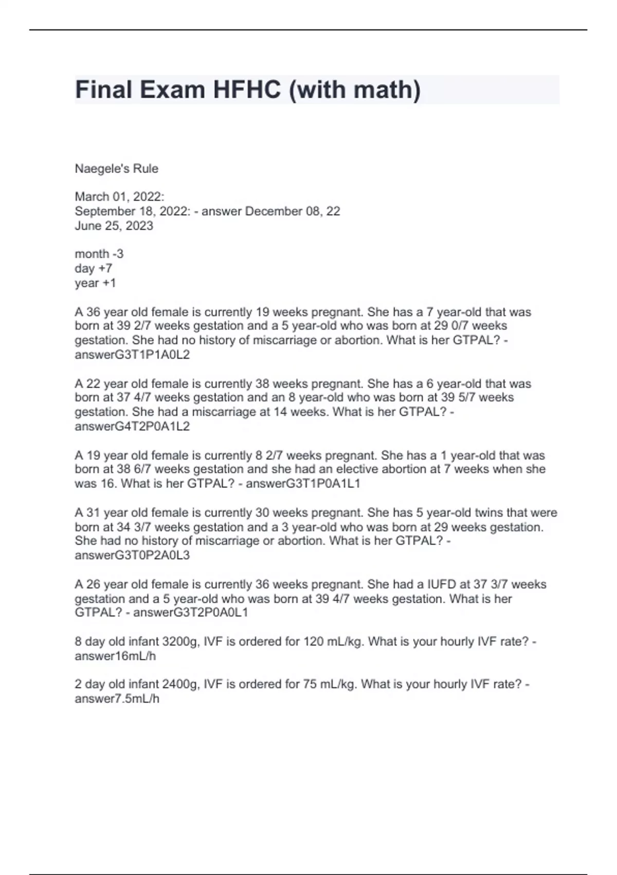 Final Exam HFHC (with math) Questions and Answers Graded A+