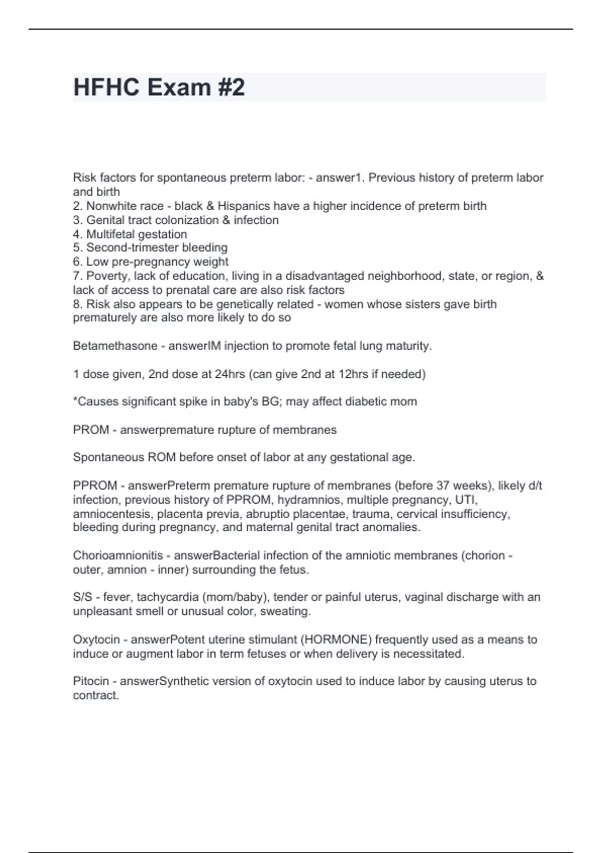 Exam of 9 pages for the course HFHC at HFHC (HFHC Exam #2)