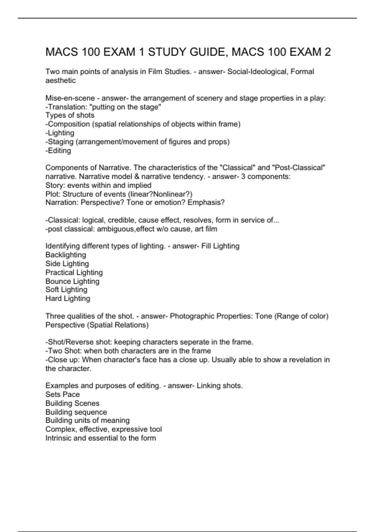 MACS 100 EXAM 1 STUDY GUIDE, MACS 100 EXAM 2