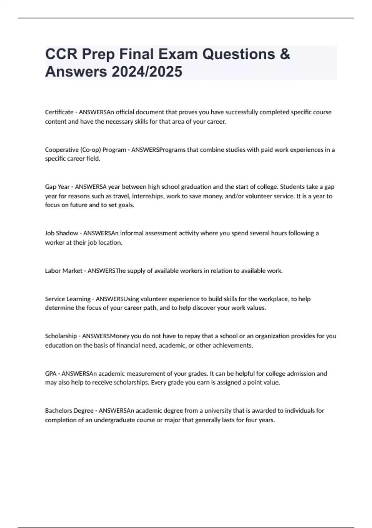 CCR Prep Final Exam Questions & Answers 2024/2025