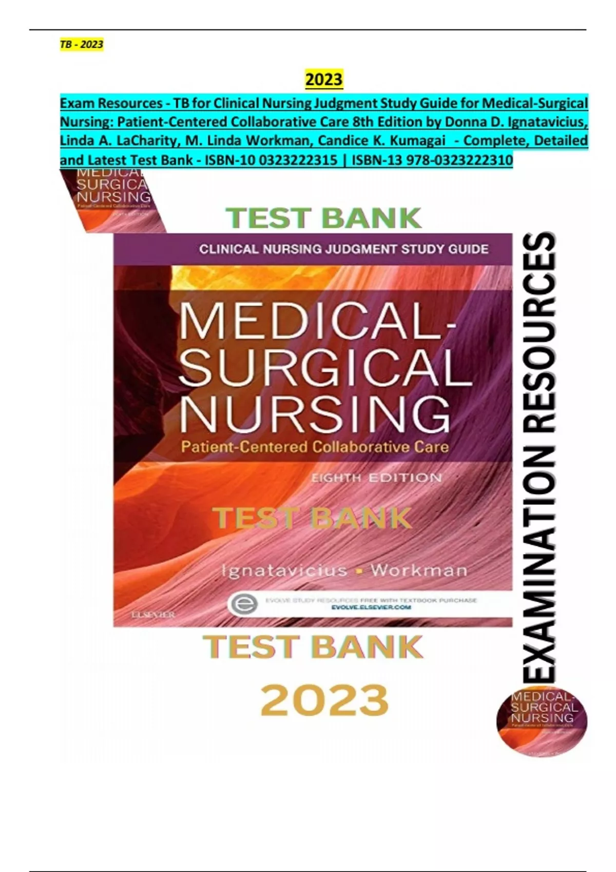 Exam Resources - TB for Clinical Nursing Judgment Study Guide for Medical-Surgical Nursing: Patient-Centered Collaborative Care 8th Edition. Complete, Detailed and Latest Test Bank. All Chapters (1-69) Included.