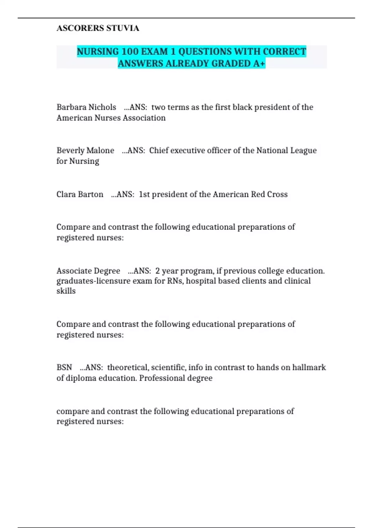 NURSING 100 EXAM 1 QUESTIONS WITH CORRECT ANSWERS ALREADY GRADED A+
