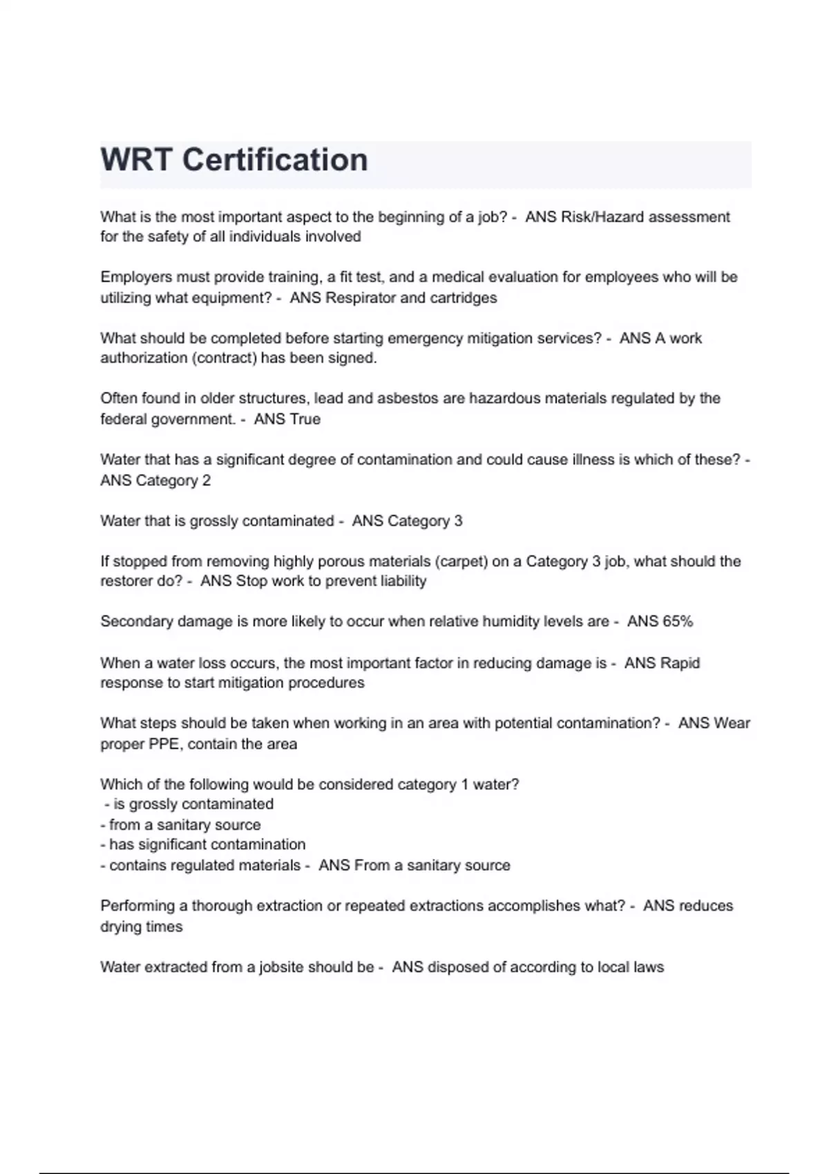 PACKAGE DEAL FOR IICRC WRT EXAMS QUESTIONS AND ANSWERS 2024( A GRADED 100% VERIFIED.