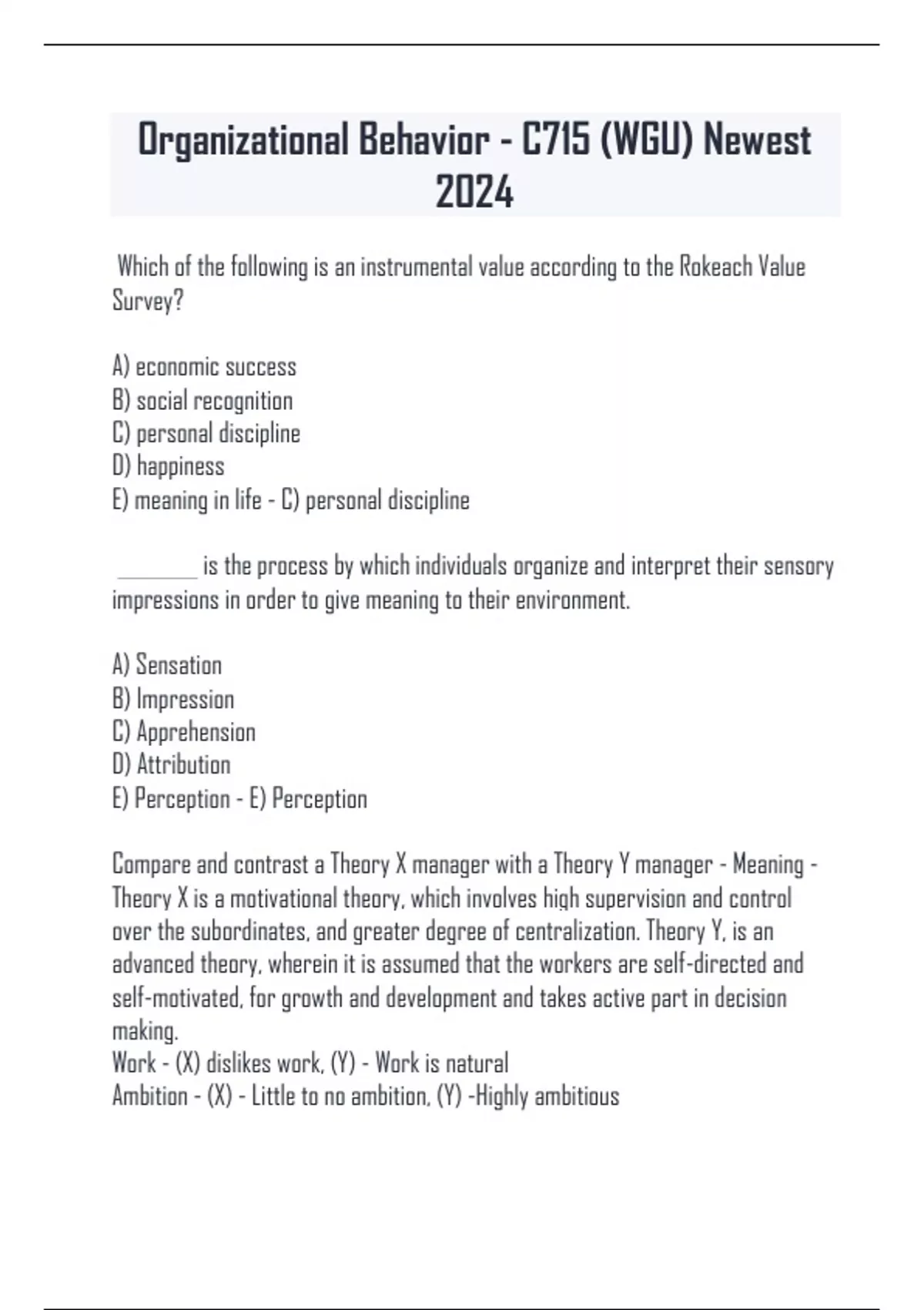 Organizational Behavior - C715 (WGU) Newest 2024