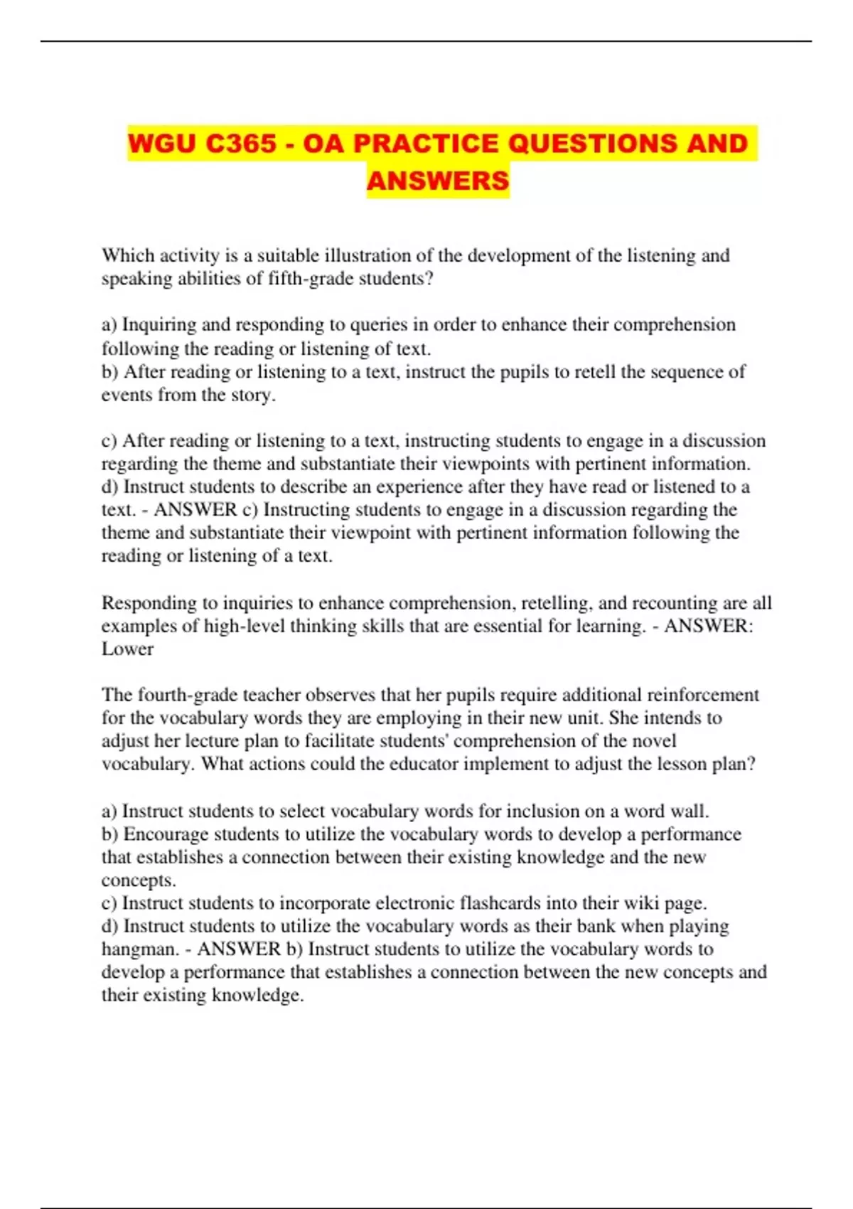 WGU C365 - OA PRACTICE QUESTIONS AND ANSWERS...