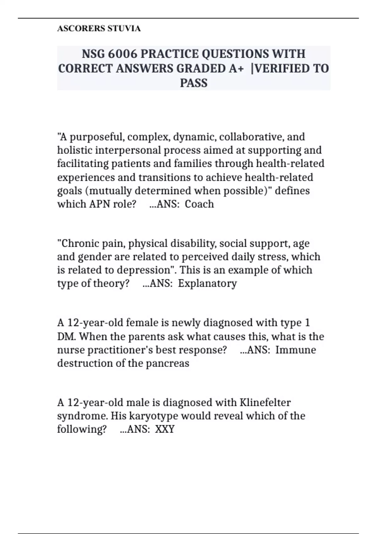 NSG 6006 PRACTICE QUESTIONS WITH CORRECT ANSWERS GRADED A+ |VERIFIED TO PASS