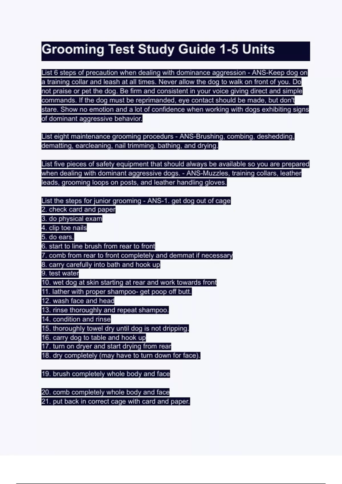 Grooming Test Study Guide 1-5 Units Exam(elaboration) Questions & answers