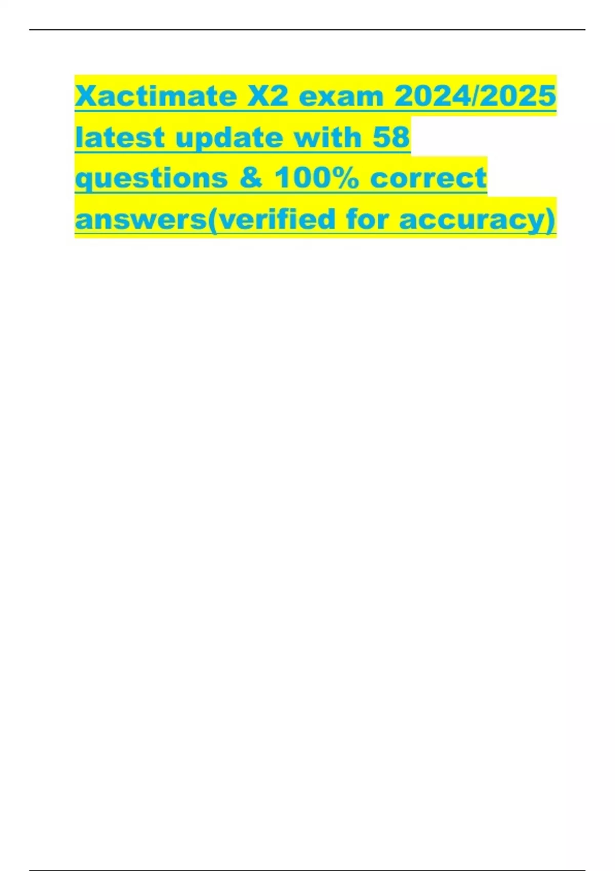 Xactimate X2 exam 2024/2025 latest update with 58 questions & 100% correct answers(verified for accuracy)