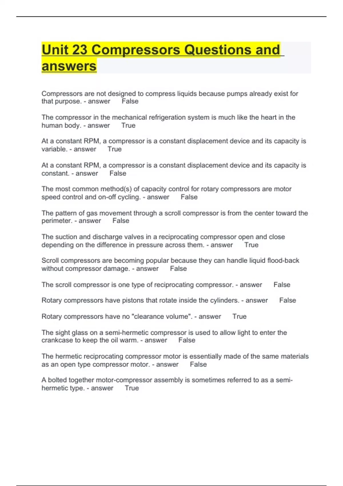 Unit 23 Compressors Questions and answers