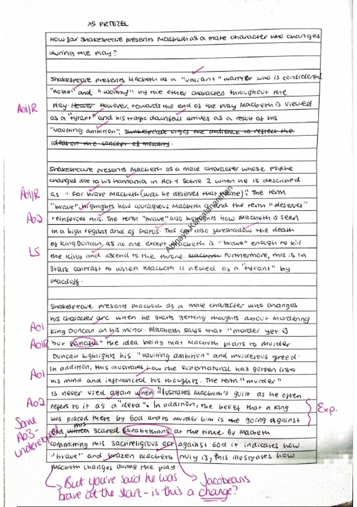 AQA GCSE Macbeth 24 out of 30 essay ( FULL SPAG MARKS)