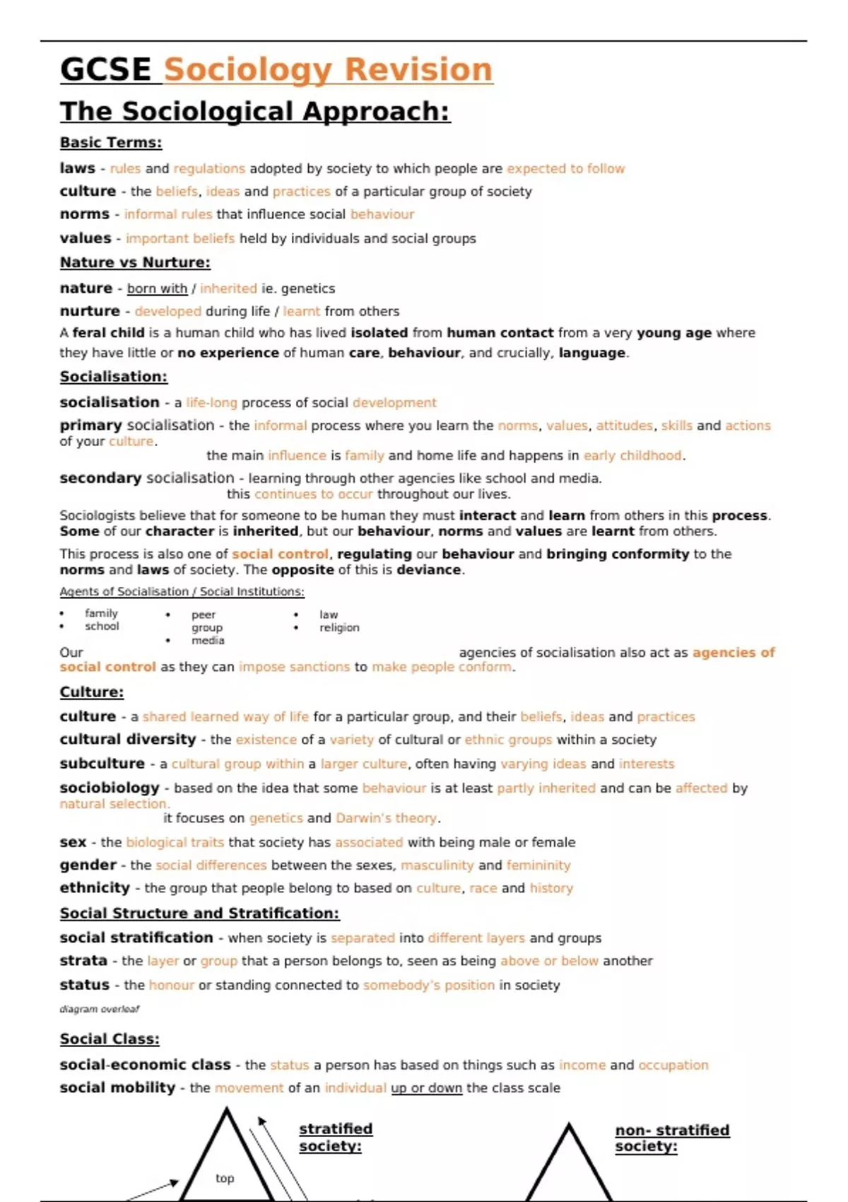 Summary GCSE Sociology Introductions Perspectives Revision from a Grade 9 student