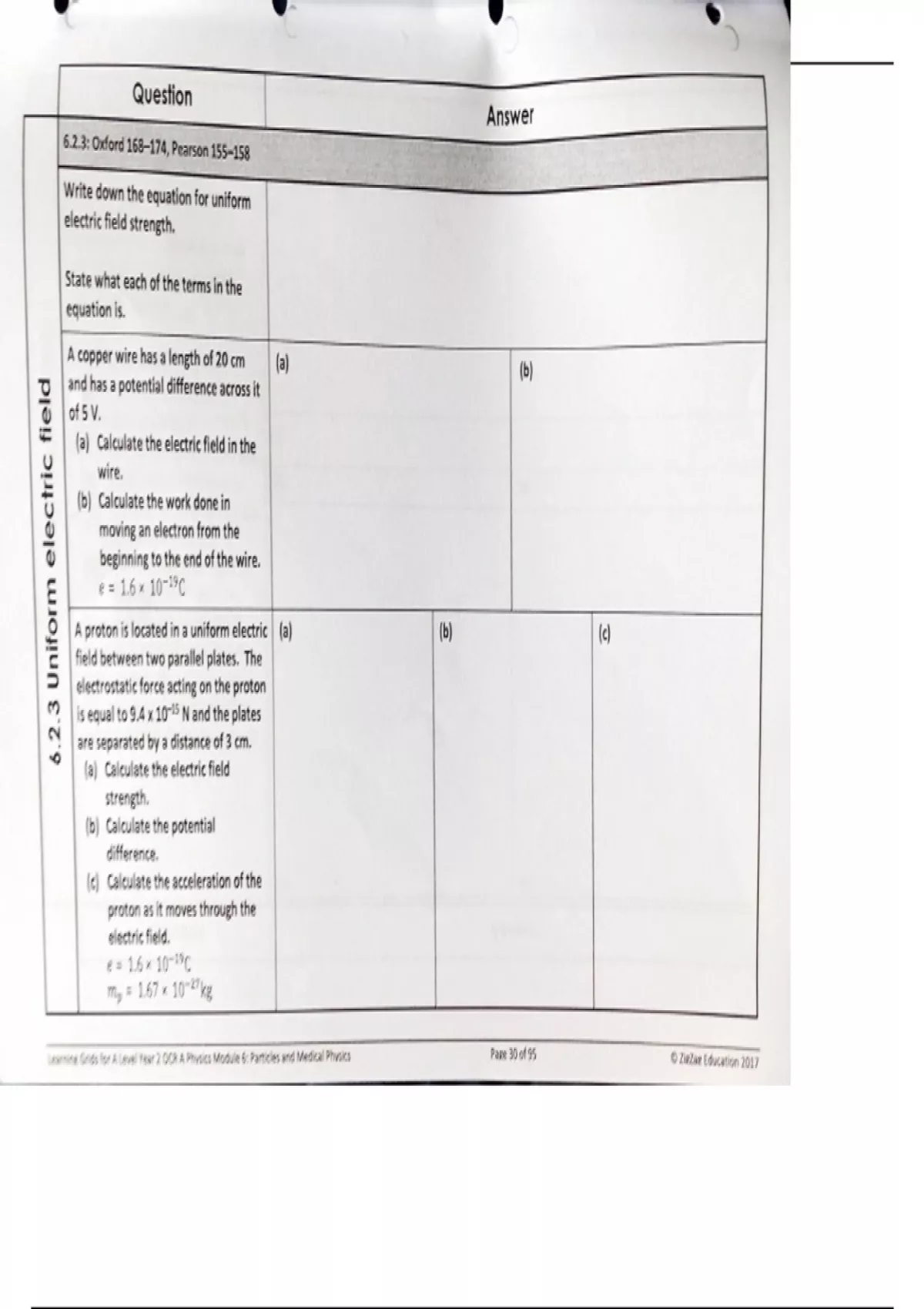 OCR A Physics 6.2.3 Uniform electric field Spec Question pack