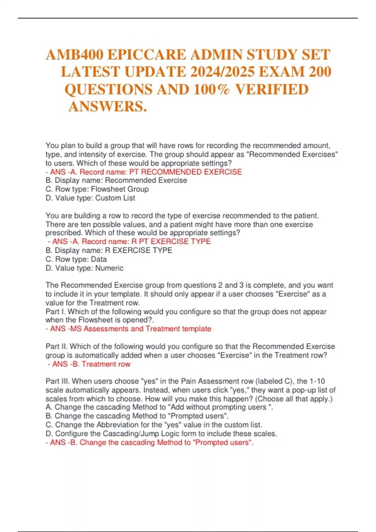 AMB400 EPICCARE ADMIN STUDY SET LATEST UPDATE 2024/2025 EXAM 200 QUESTIONS AND 100% VERIFIED ANSWERS.