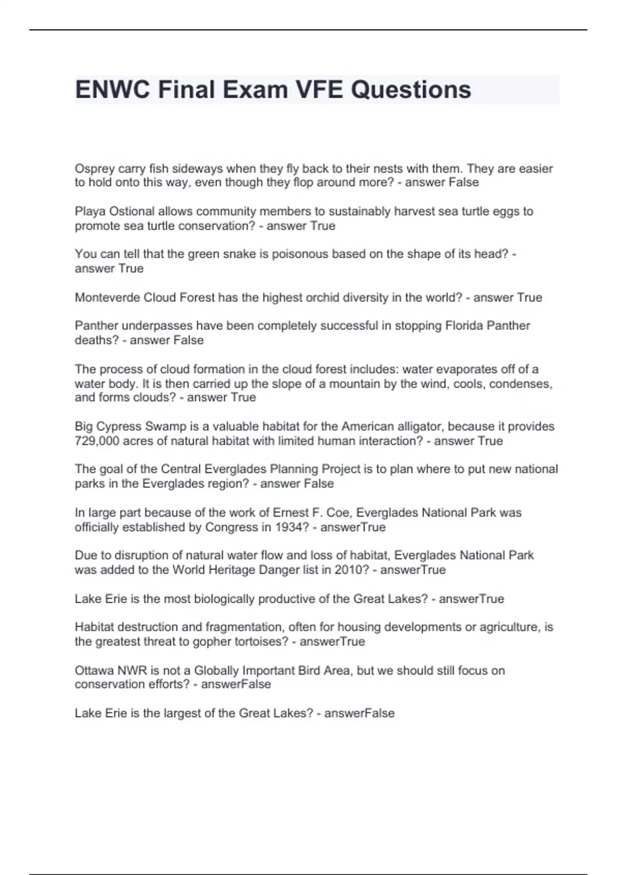 ENWC Final Exam VFE Questions and Answers Graded A+