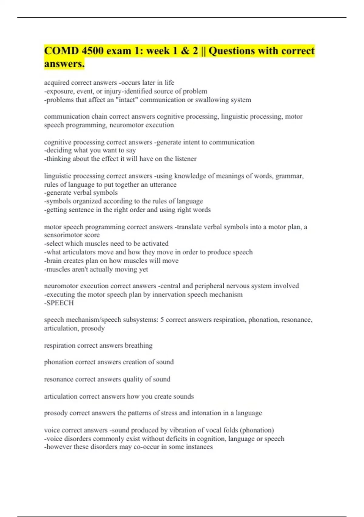 communication chain correct answers cognitive processing, linguistic processing, motor speech programming, neuromotor execution