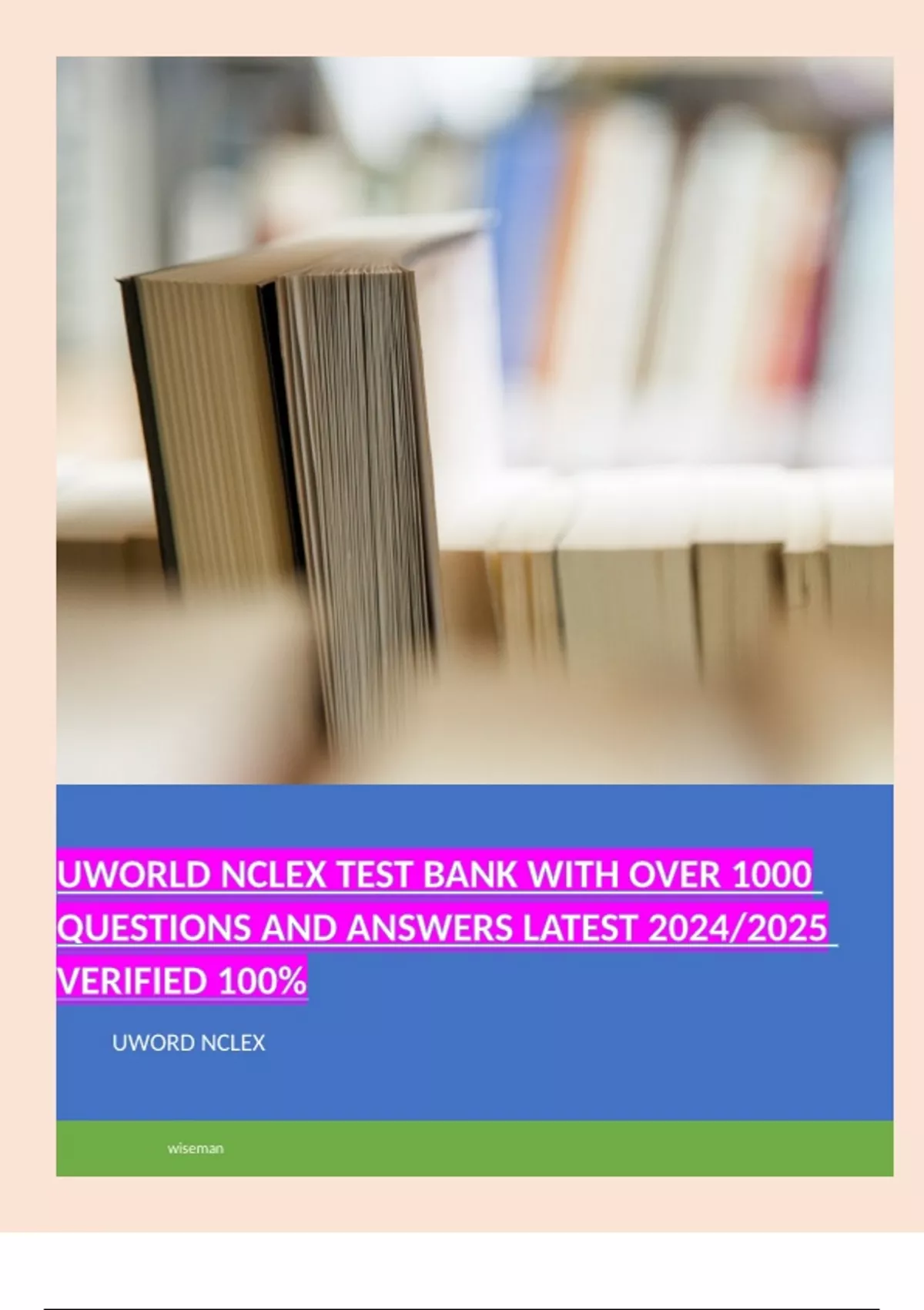 UWORLD NCLEX TEST BANK WITH OVER 1000 QUESTIONS AND ANSWERS LATEST 2024/2025 VERIFIED 100%