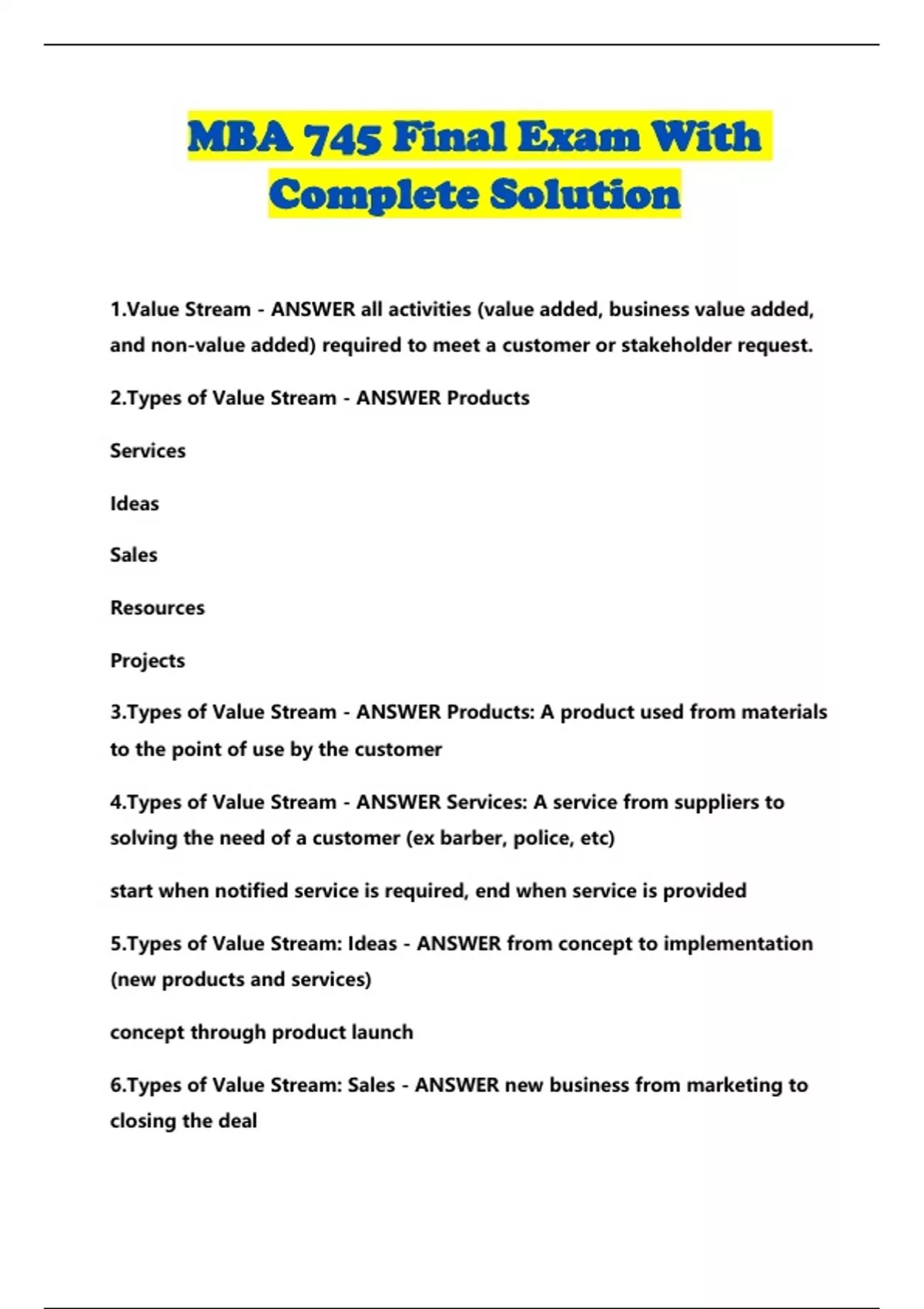 mba 745 final exam with complete solution