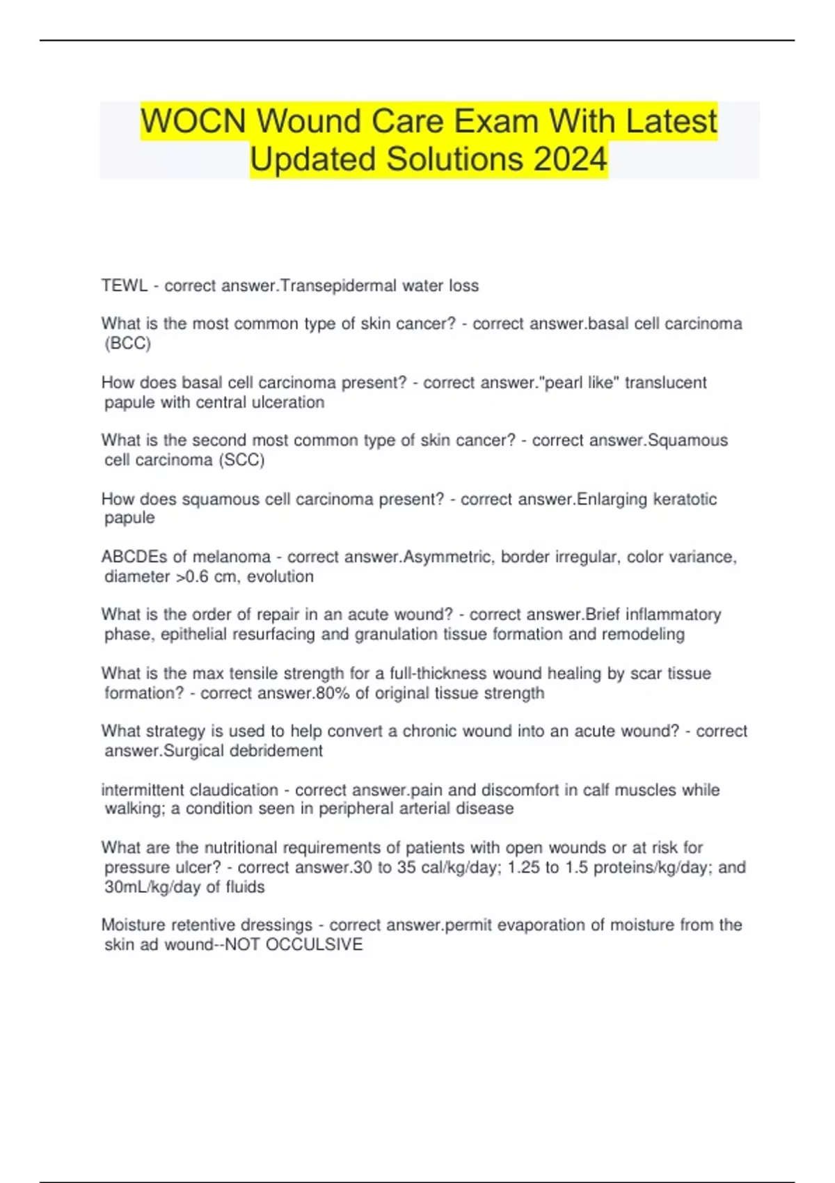 WOCN Wound Care Exam With Latest Updated Solutions 2024