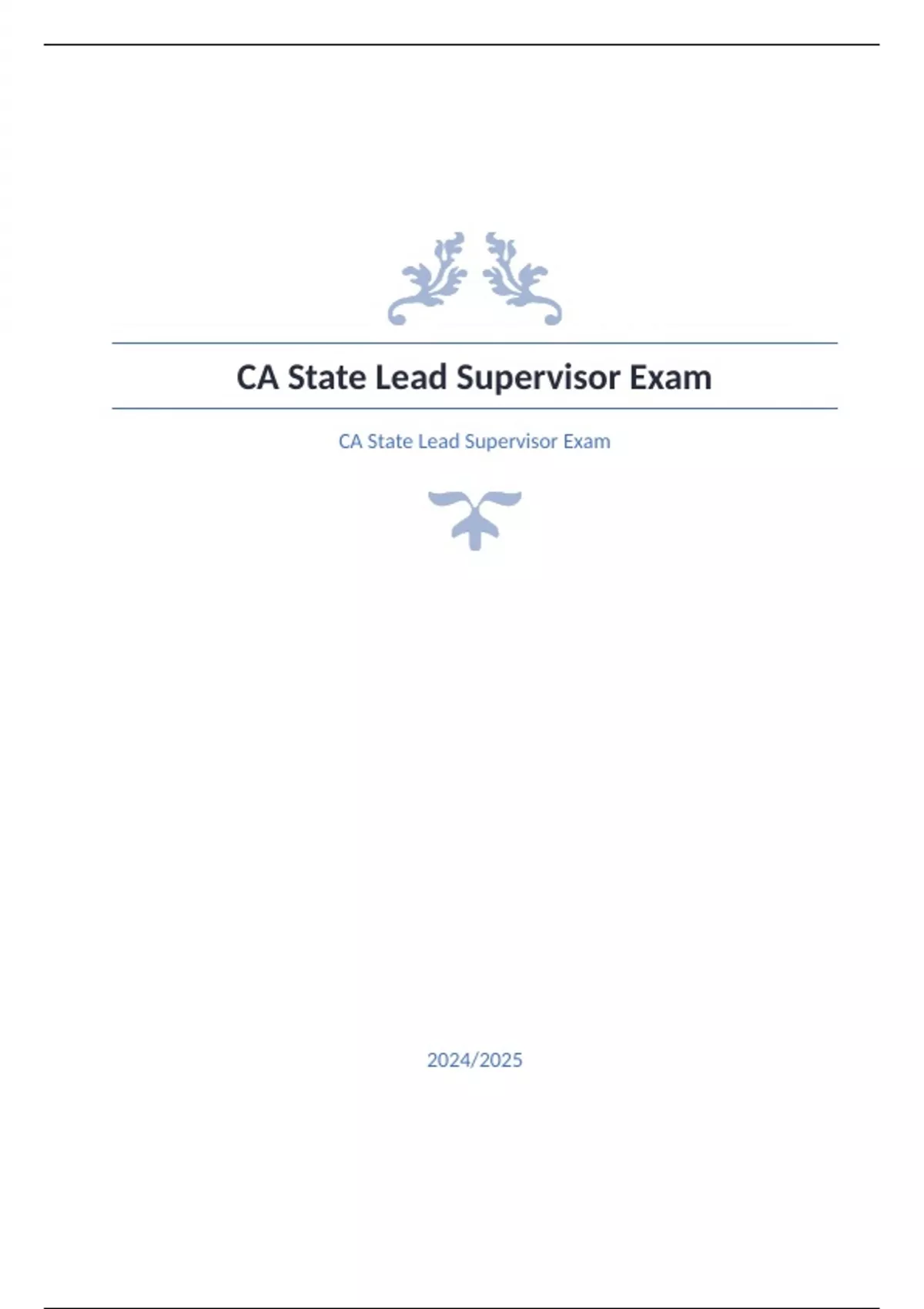 CA State Lead Supervisor Exam Question and answers rated A+