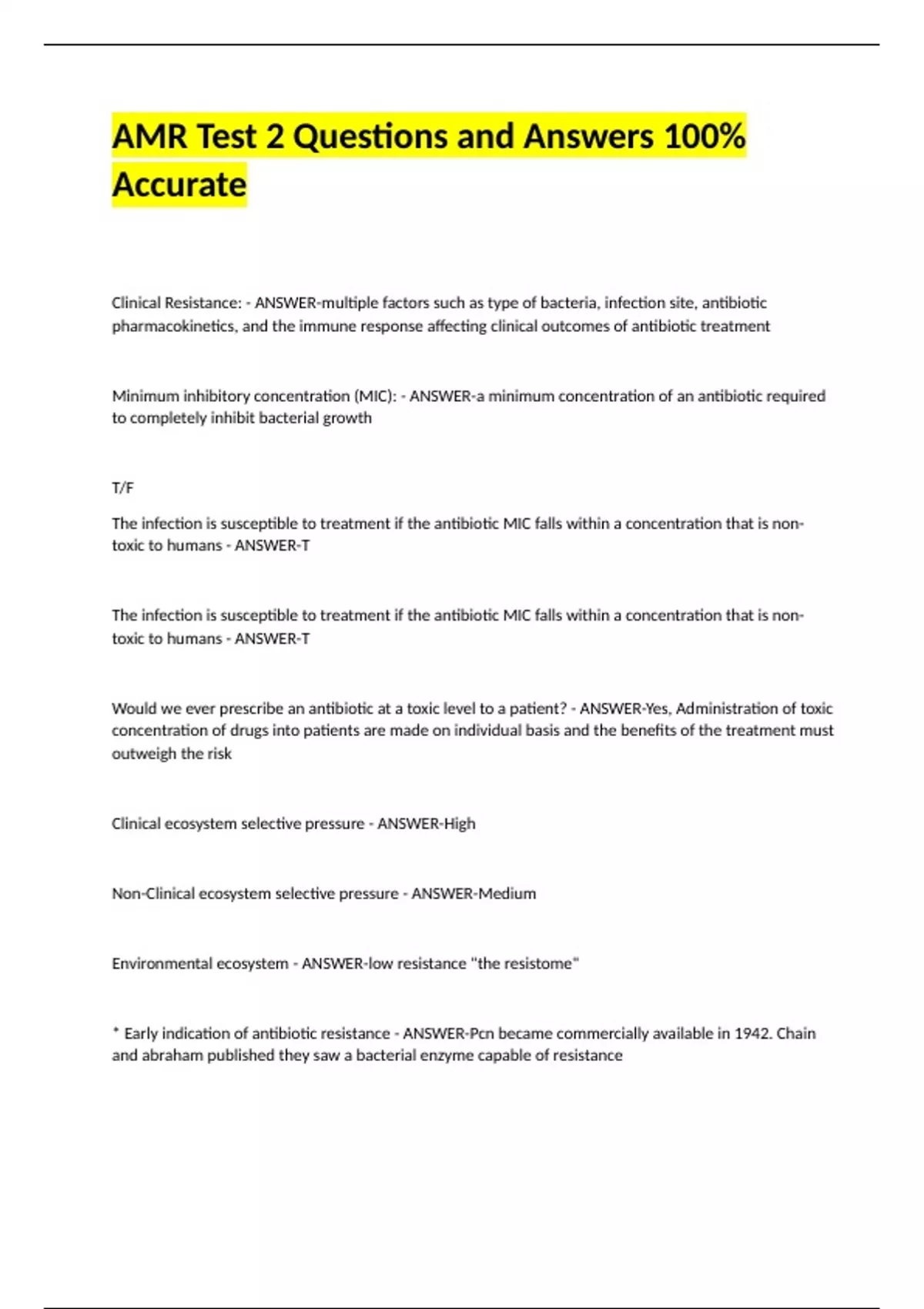 Intrinsic Resistace - ANSWER-Natural-occurring resistance to antibiotics