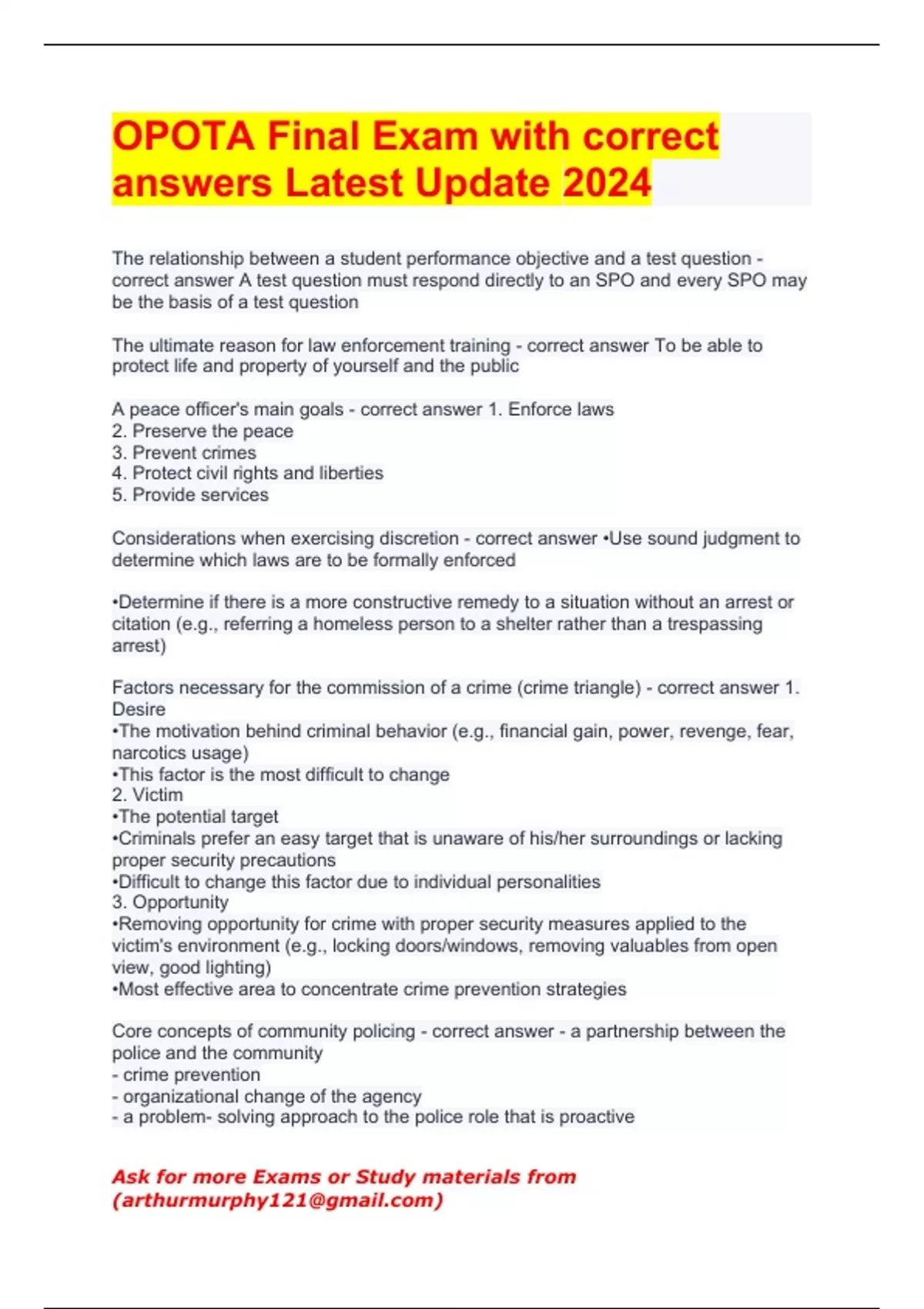 OPOTA Final Exam with correct answers Latest Update 2024