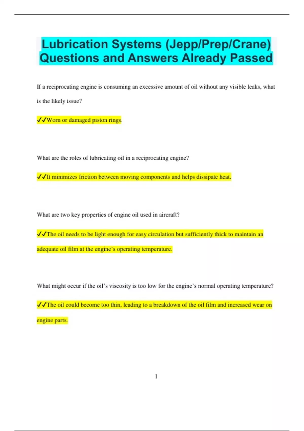 Lubrication Systems (Jepp/Prep/Crane) Questions and Answers Already Passed