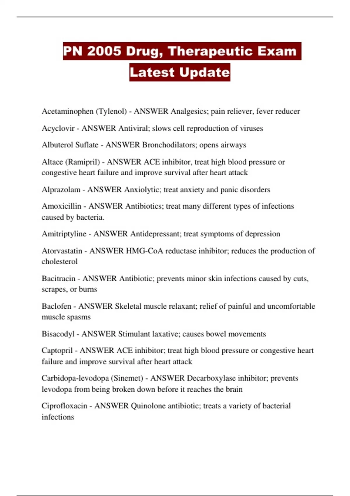 PN 2005 Drug, Therapeutic Exam