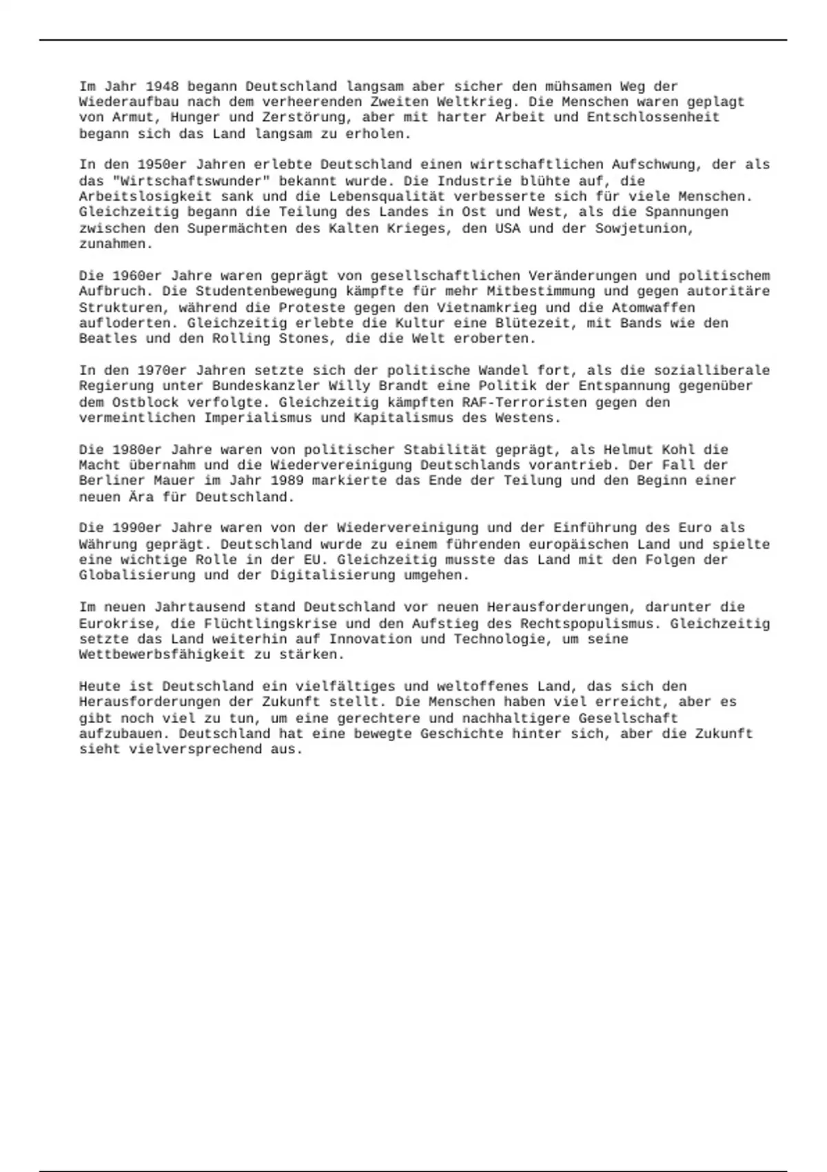 aufzubauen. Deutschland hat eine bewegte Geschichte hinter sich, aber die Zukunft
