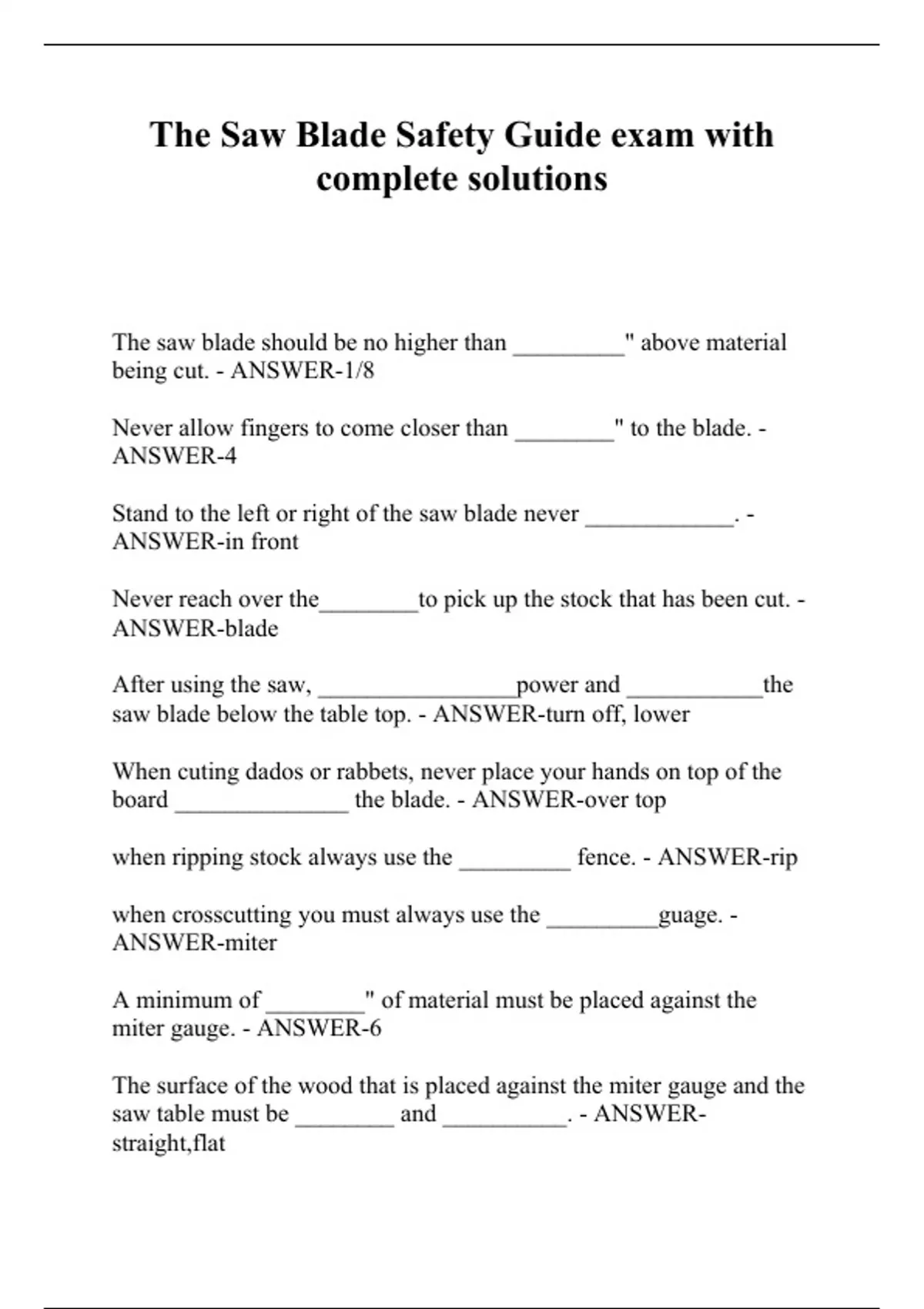The Saw Blade Safety Guide exam with complete solutions