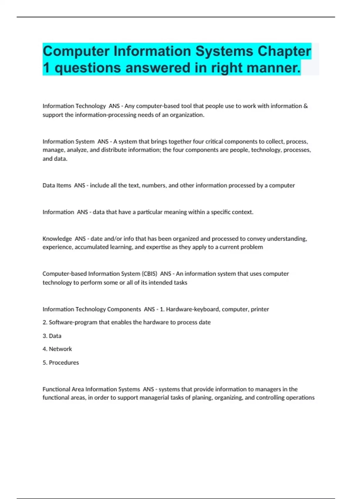 Computer Information Systems Chapter 1 questions answered in right manner.