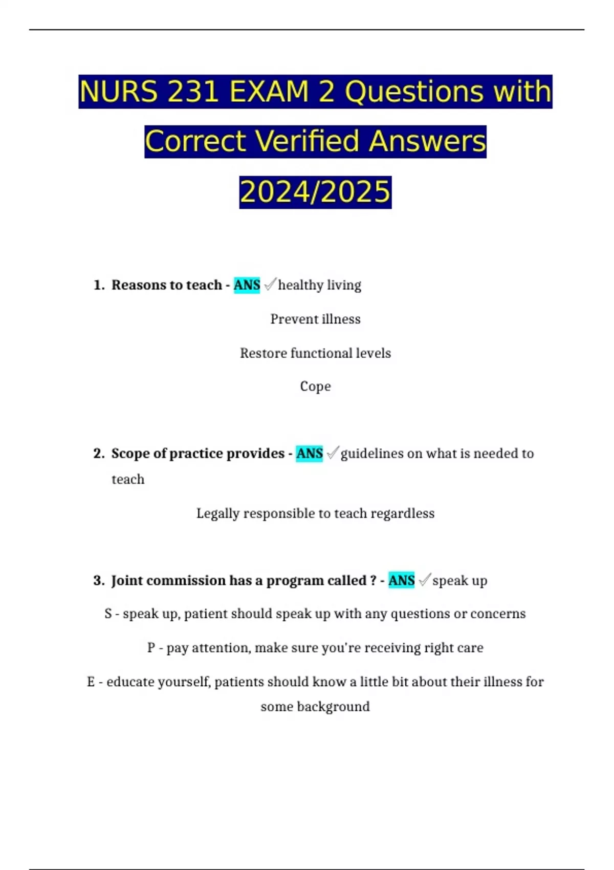 NURS 231 EXAM 2 Questions with Correct Verified Answers 2024/2025