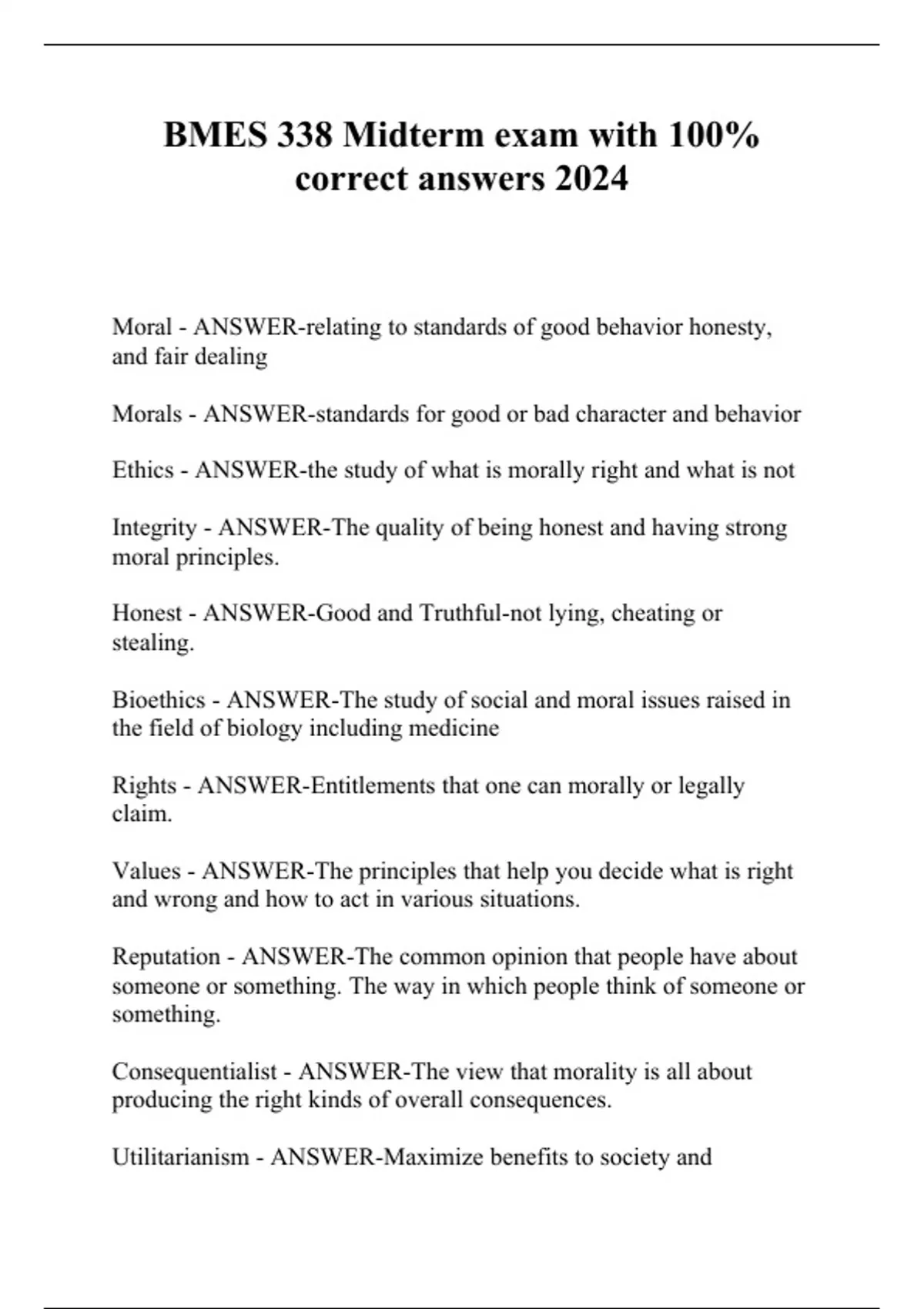 BMES 338 Midterm exam with 100- correct answers 2024